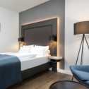 Der Eingangsbereich und alle Verbindungswege zu den Zimmern, Tagungsräumen, zum Restaurant und in die Hotelbar sind barrierefrei. Die 342 vollklimatisierten Hotelzimmer verfügen über einen großen Schreibtisch, ein modernes Bad/WC mit Wanne und sind mit Minibar und WLAN-Internetverbindung, V-DSL, Telefon und Flatscreen ausgestattet. Zudem sind sie schallisoliert und verfügen teilweise über Verbindungstüren. Zwei Hotelzimmer sind komplett für Rollstuhlfahrer und gehbehinderte Gäste ausgebaut.