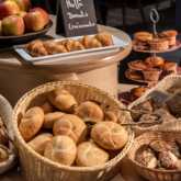 Im Sommer können Gäste die umrahmte Außenterrasse mit Gartenteich zum Frühstück nutzen. Die Räumlichkeiten eignen sich auch für private Feiern.