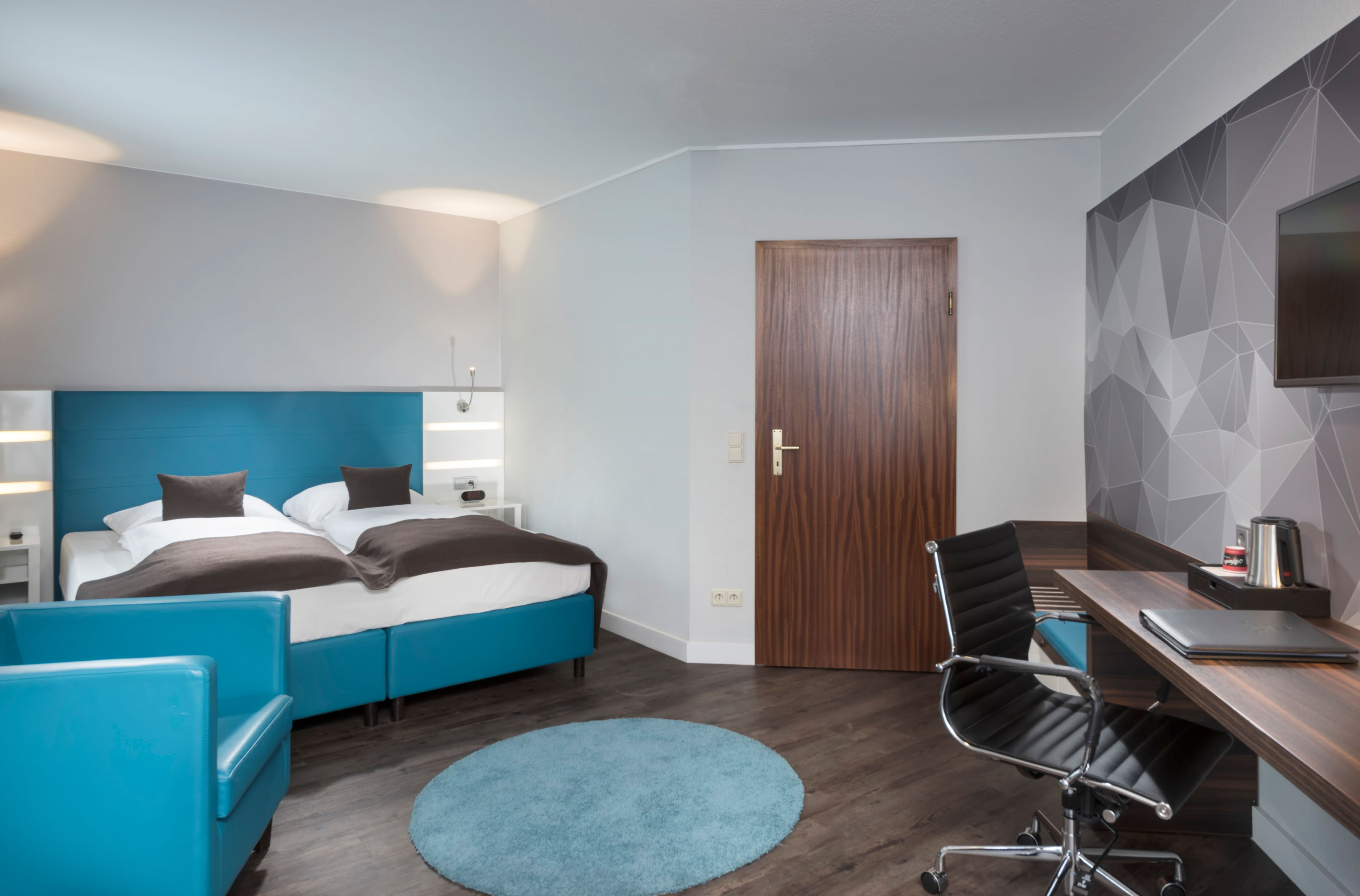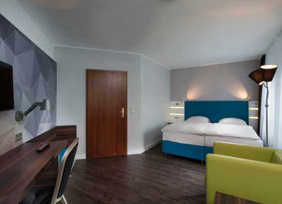 The Sure Hotel by Best Western Mannheim City offers 56 single and 106 double rooms in the categories Standard, Superior and Deluxe. The room sizes are between 18 and 30 m². All rooms are equipped with a desk and soundproof windows and most rooms feature a small kitchenette.