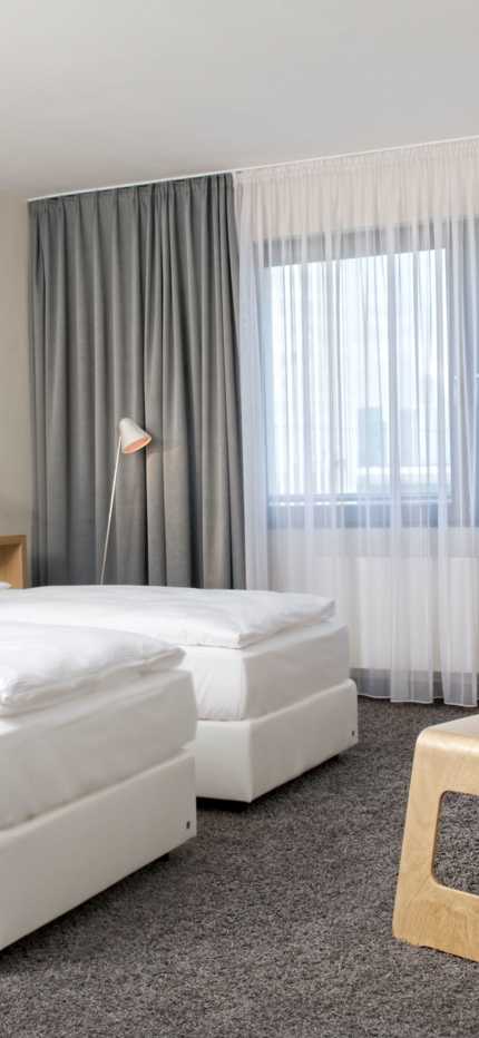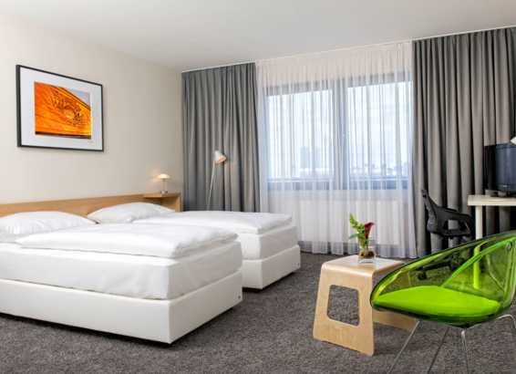 The TRYP by Wyndham Frankfurt offers 142 hotel rooms including 112 double rooms, 26 single rooms and 4 suites. Room sizes in the categories Standard, Business and Superior vary between 15 and 30 m². All rooms are equipped with free Wi-Fi, a flat-screen TV, air conditioning and a safe.