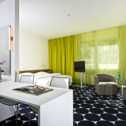 The 40 m² suites have separate living and sleeping areas. Extra beds are available for € 25.00 per night. Pets are allowed against a surcharge of € 8.00 per night/pet.