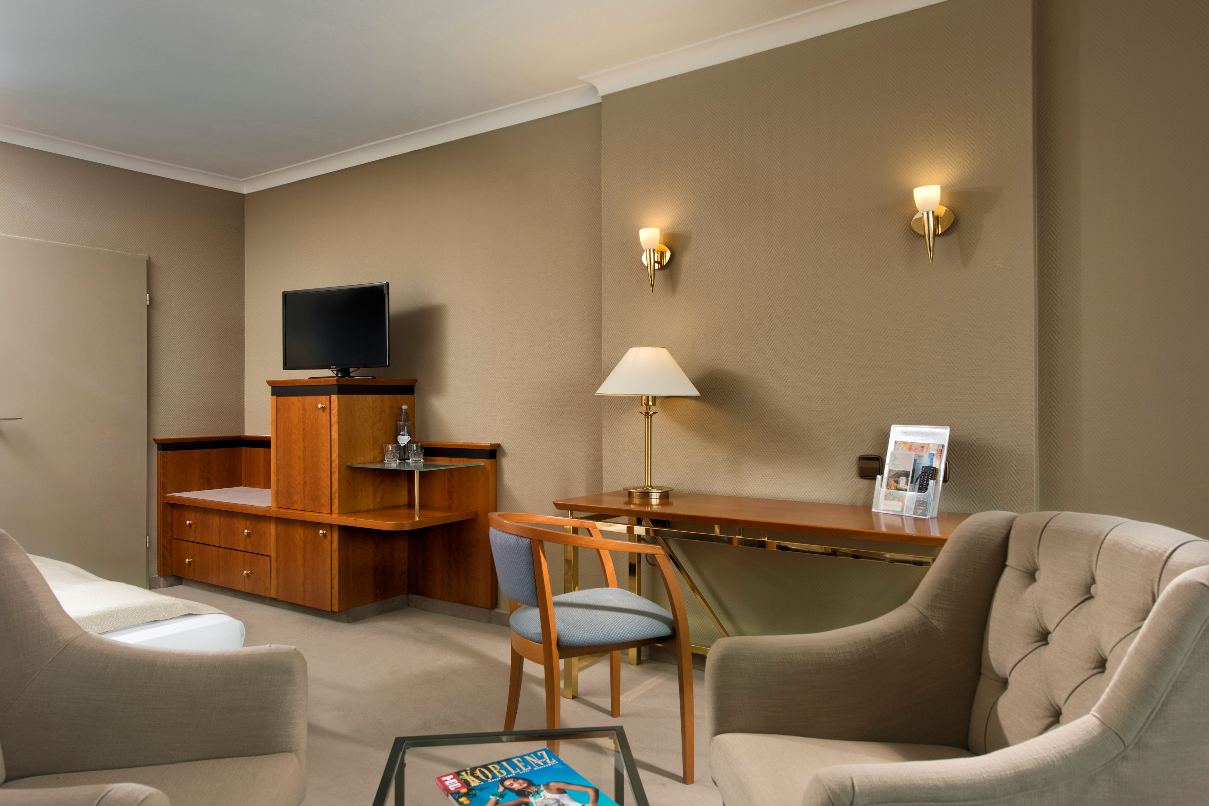 The hotel is located in a quiet park landscape overlooking the Rhine and Lahn rivers, presenting a spectacular view. The hotel offers 228 guest rooms and suites as well as a broad culinary selection in one restaurant and one bar. 15 rooms are available for events and conferences. The hotel enjoys good transport links and offers sufficient on-site parking spaces.