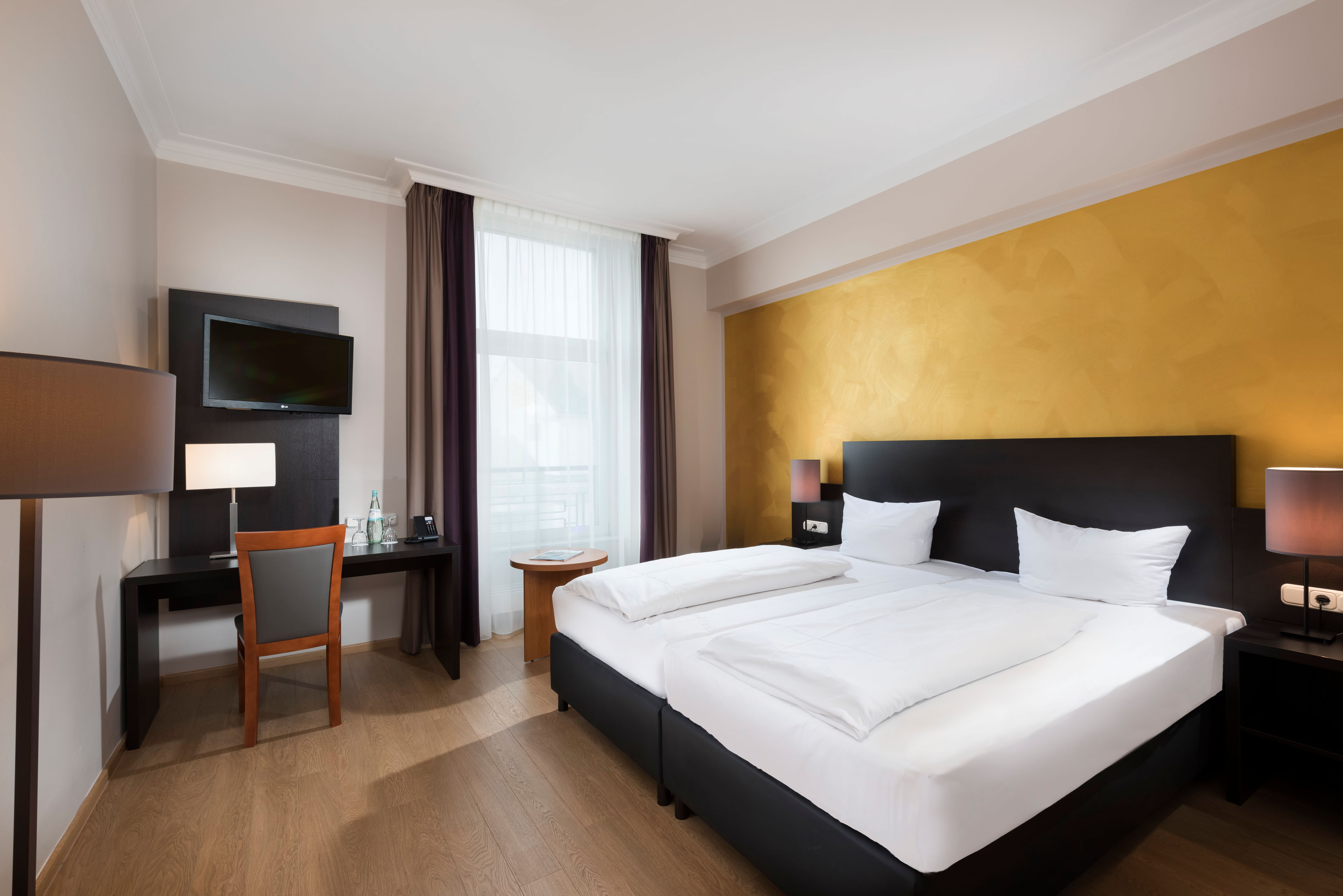 The 4-star hotel offers a total of 109 guest rooms in three different sizes ranging from 10 to 51 m², depending on the category. The available room categories are Standard, Deluxe and Junior Suite. The standard equipment of the partly air-conditioned rooms includes an en-suite bathroom with a shower or a bathtub and a mini bar. Additionally, the rooms feature a work desk, a telephone and a flat-screen cable TV. Free Wi-Fi is available throughout the hotel.