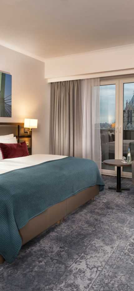 The 133 hotel rooms are modern and comfortable. Soundproof windows and air conditioning ensure highest sleeping comfort. Free Wi-Fi is available in all hotel areas. Next to the hotel rooms, the best place to relax is our hotel bar Le Perron, with a chilled "Kölsch" beer or a zesty cocktail. Our outdoor terrace is open during the summer months.