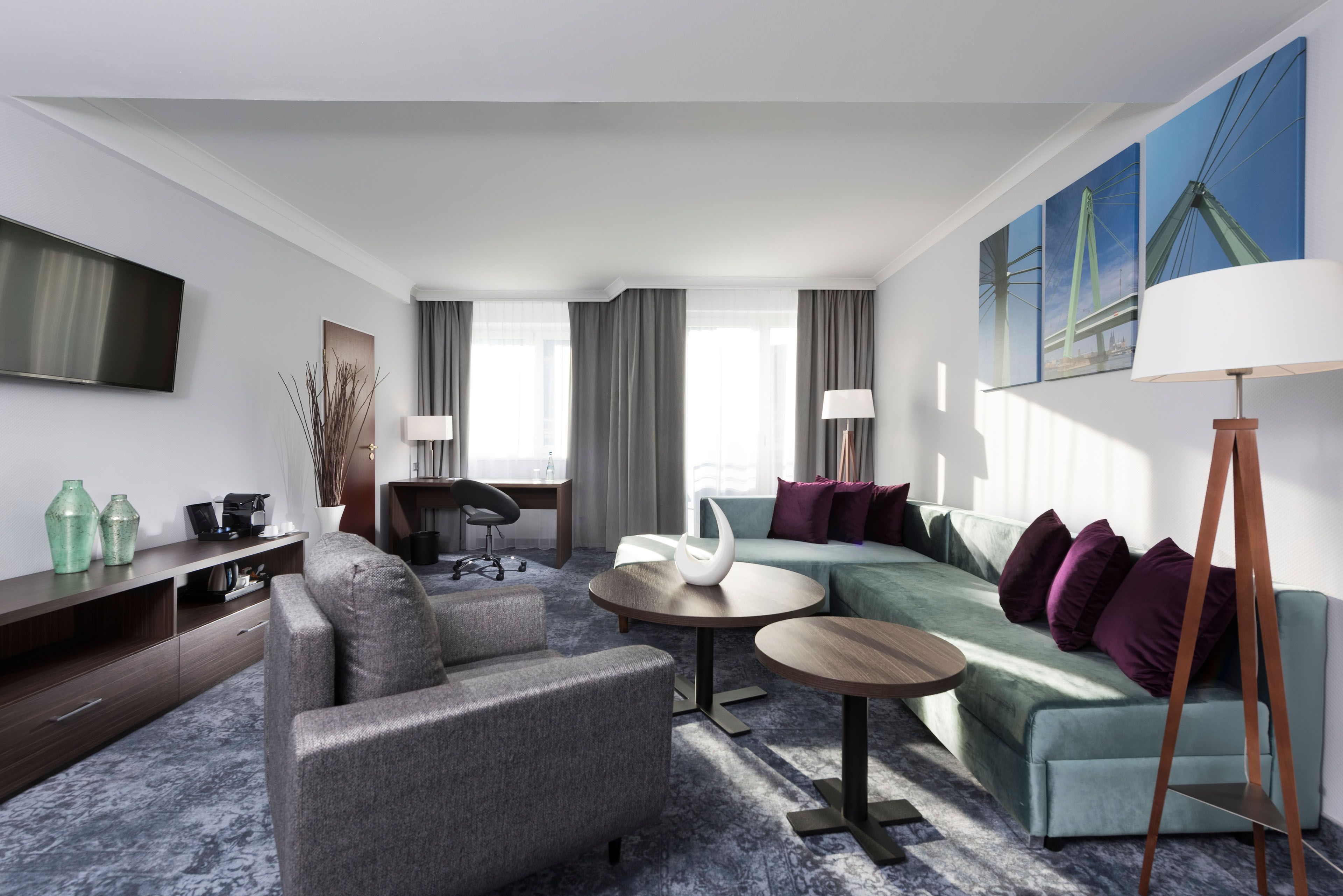 The stylishly decorated rooms at the Wyndham Köln Hotel offer an ideal retreat after a long day in Cologne. End the day relaxed with a good movie or surfing the internet - thanks to the free WiFi without having to use any mobile data. All rooms at the Wyndham Köln Hotel were renovated in 2018 and are equipped with air conditioning and soundproof windows.